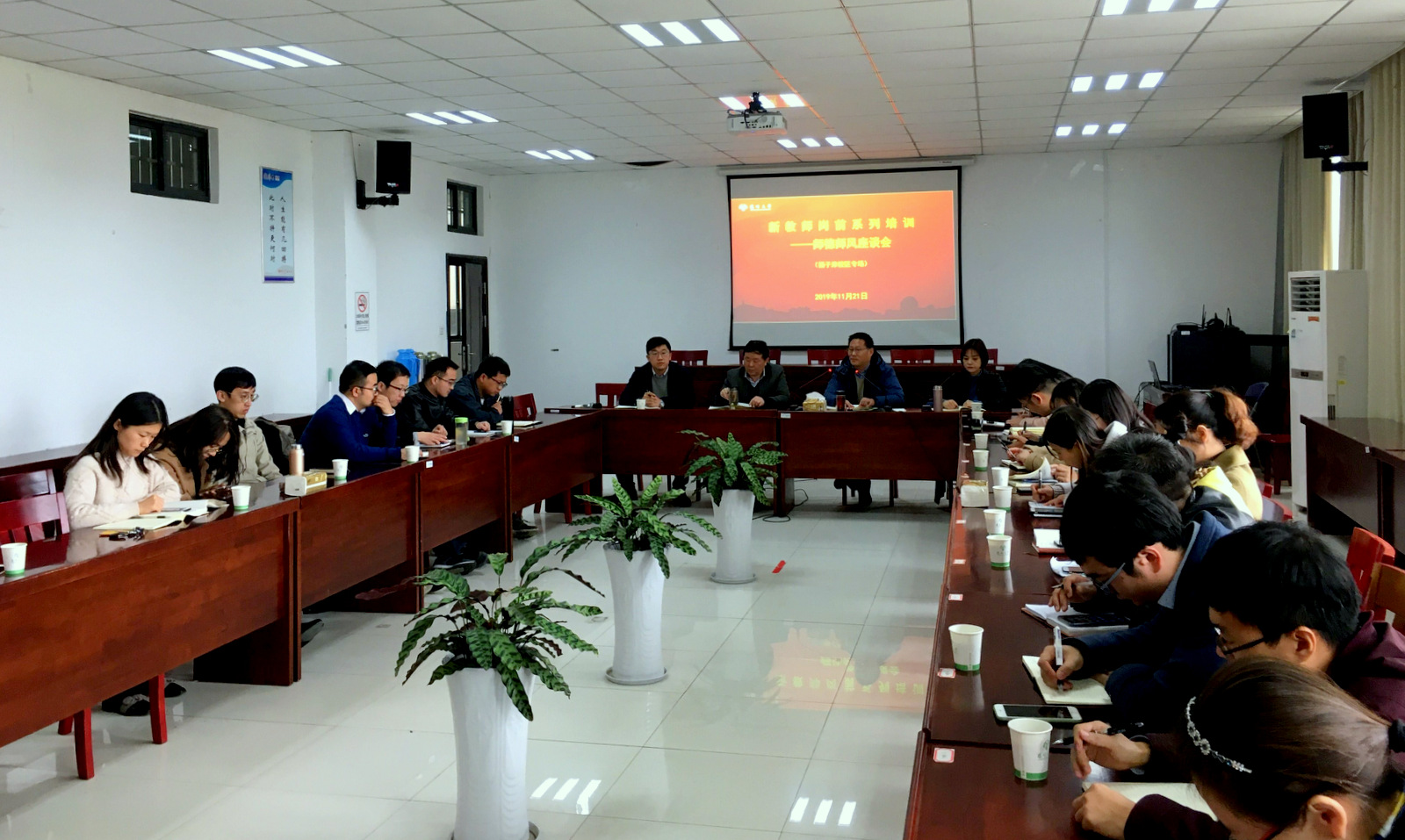 11月21日下午,学校在扬子津校区笃行楼法学院N324会议室召开新入职教师岗前系列培训——扬子津校区新入职教师师德师风座谈会。