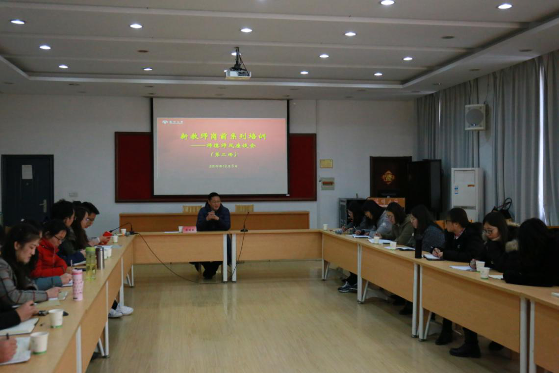 12月5日下午,学校在文汇路校区动物科学与技术学院立华报告厅召开新入职教师岗前系列培训——师德师风座谈会(第二场)。
