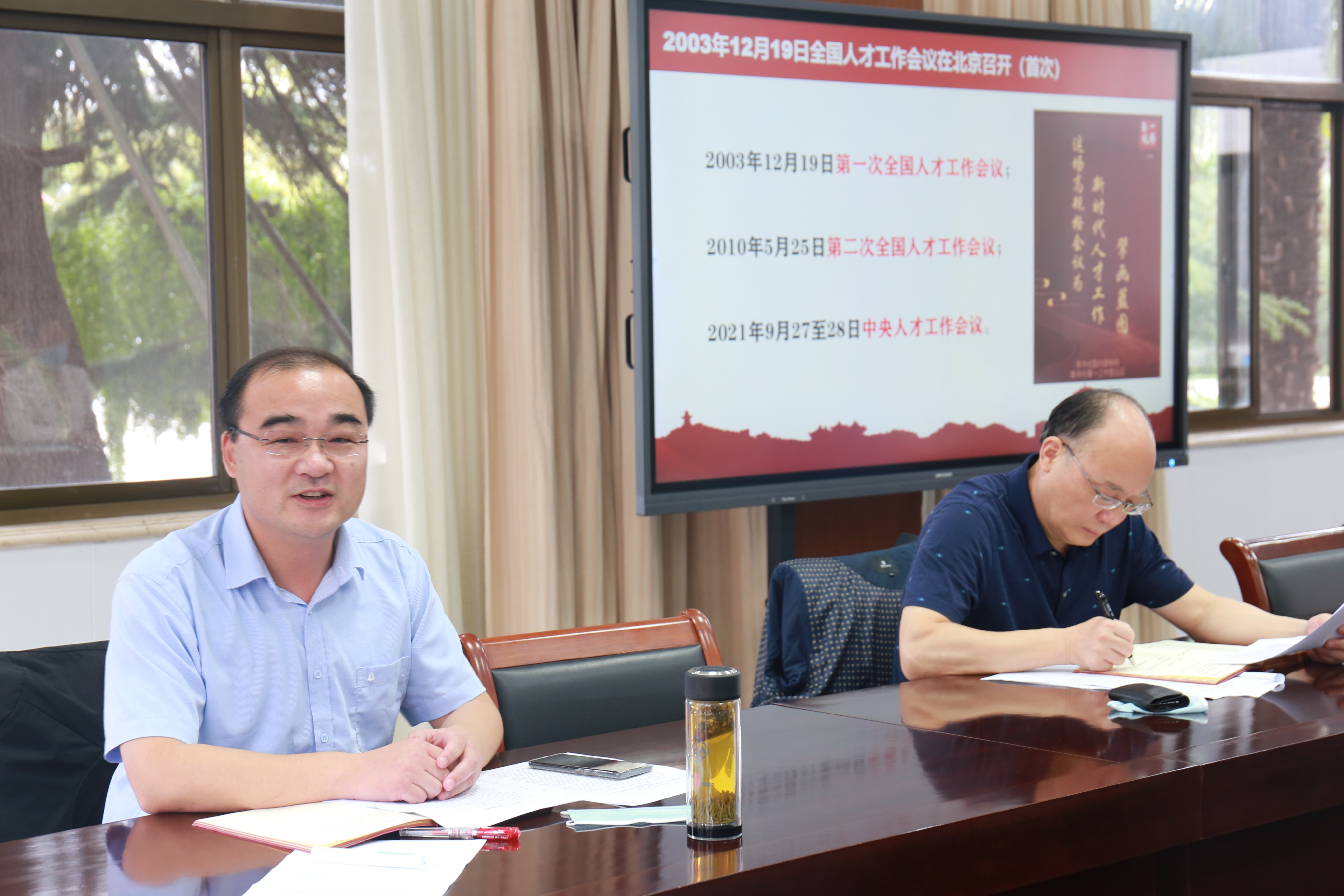为深入学习贯彻习近平总书记在中央人才工作会议上的重要讲话精神,切实把思想和行动统一到讲话精神上来,近日,行政党总支第二党支部开展“让事业激励人才 让人才成就事业”——学习贯彻中央人才工作会议精神专题讲座。