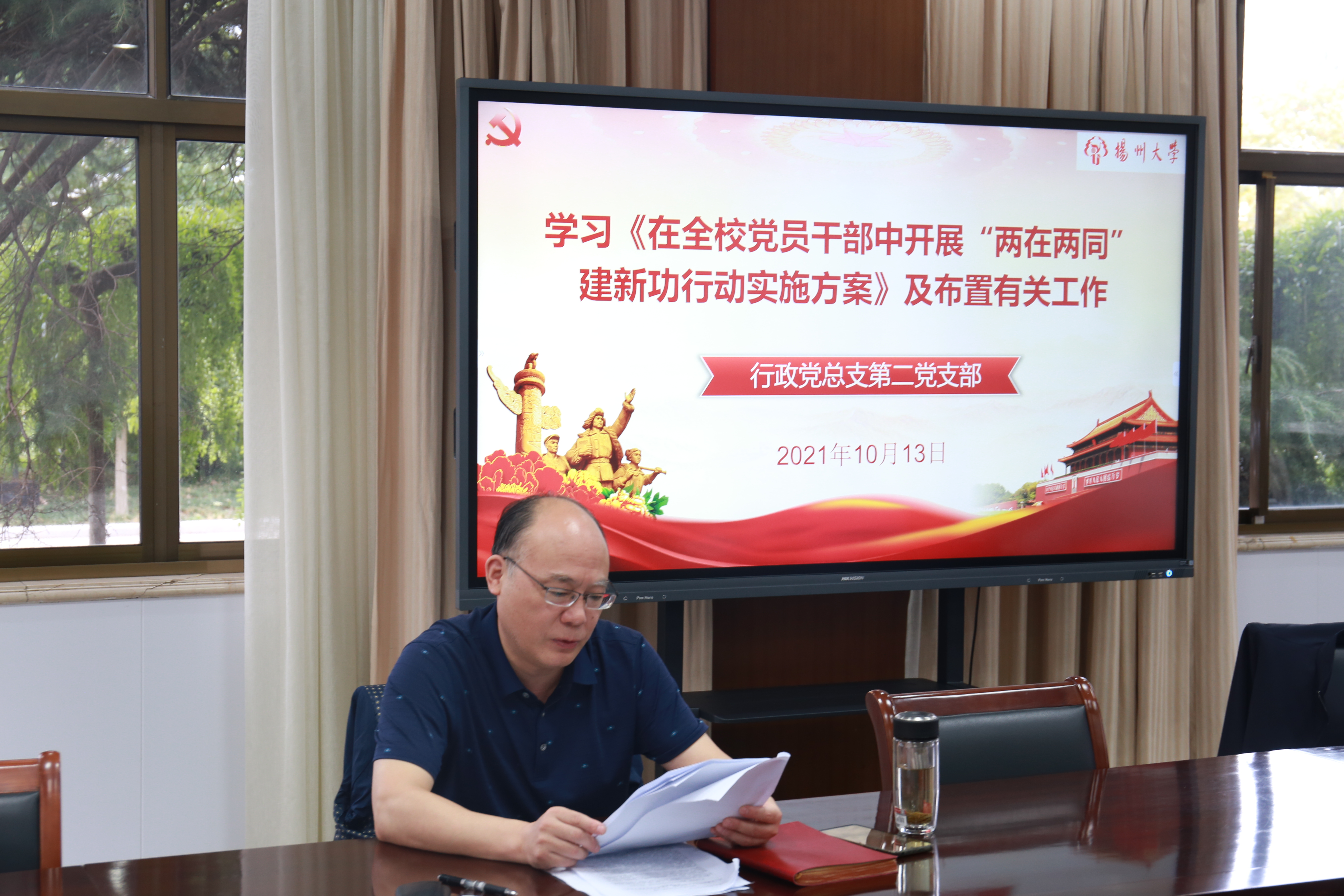 支部负责同志介绍了学校《在全校党员干部中开展“两在两同”建新功行动实施方案》,并强调了重点任务和方法步骤,要求全体党员在推进立德树人上建新功、在推进高质量发展上建新功、在推进民生工程上建新功、在推进高质量就业上建新功、在应对急难险重上建新功。根据实施方案,要求每位领导干部和每位党员根据工作职责提出调查研究的题目,做好研究分析工作。