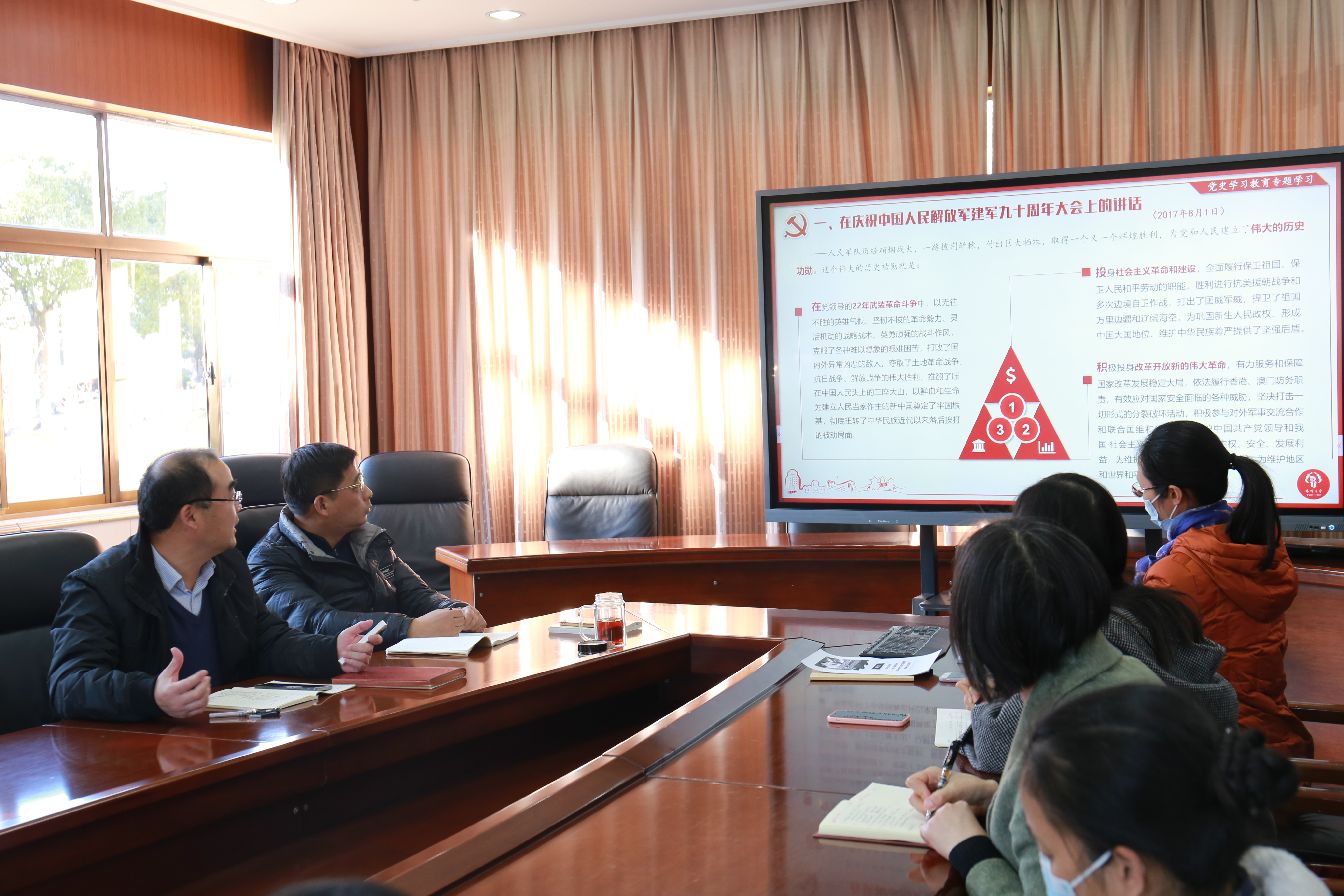 会上,潘骏同志领学了《论中国共产党历史》,对《习近平在纪念邓小平同志诞辰110周年座谈会上的讲话》、《在中国实行人民代表大会制度是中国人民在人类政治制度史上的伟大创造》、《古田会议奠基的我军政治工作对我军生存发展起到了决定性作用》、《继续从延安精神中汲取力量》、《总结党的历史经验,牢固树立四个意识》、《把红色基因传承好,把红色江山世世代代传下去》、《让井冈山精神放射出新的时代光芒》、《在庆祝中国共产党成立九十五周年大会上的讲话》、《在纪念红军长征胜利80周年大会上的讲话》、《学好党史、新中国史、改革开放史、社会主义发展史》等章节作了重点学习。