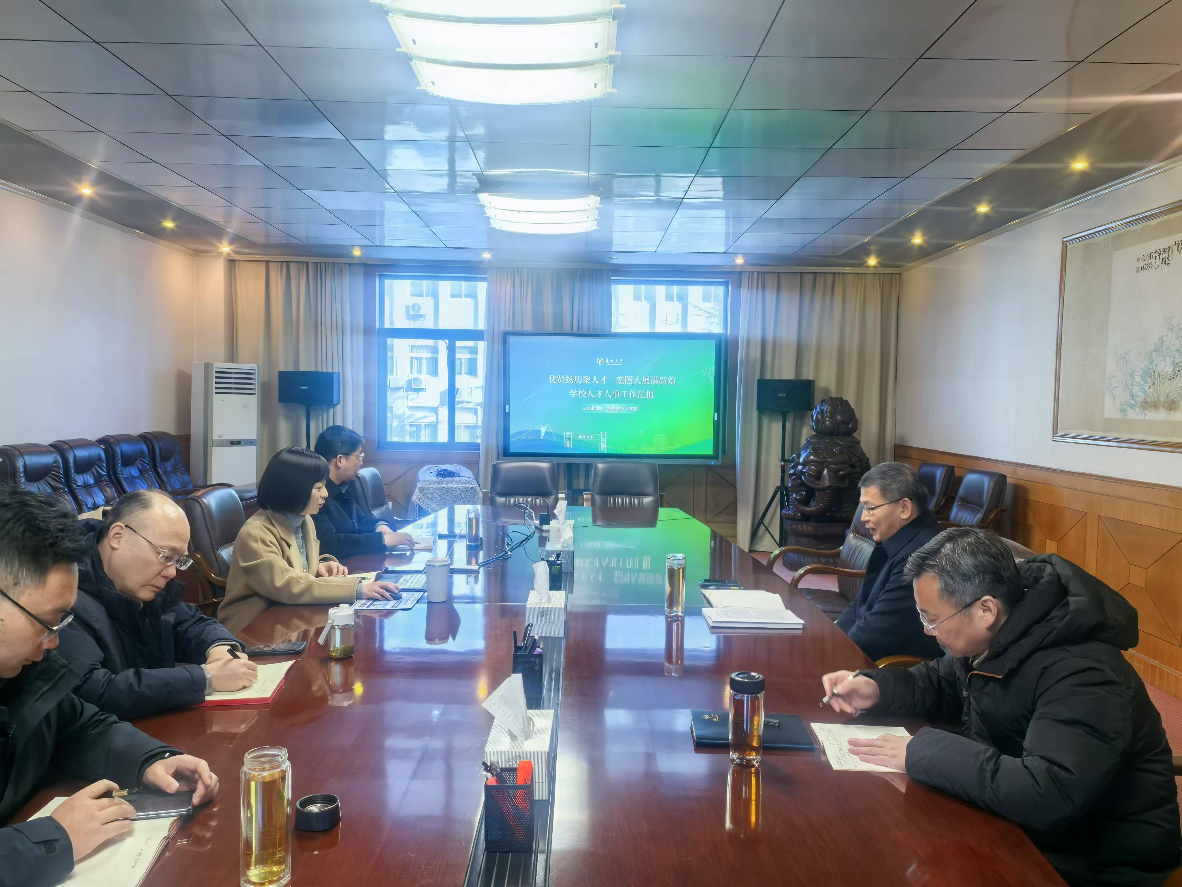 近日,校长刘巧泉调研指导学校人才人事工作,人力资源处处长、党委教师工作部部长徐蕾作人才人事工作专题汇报。