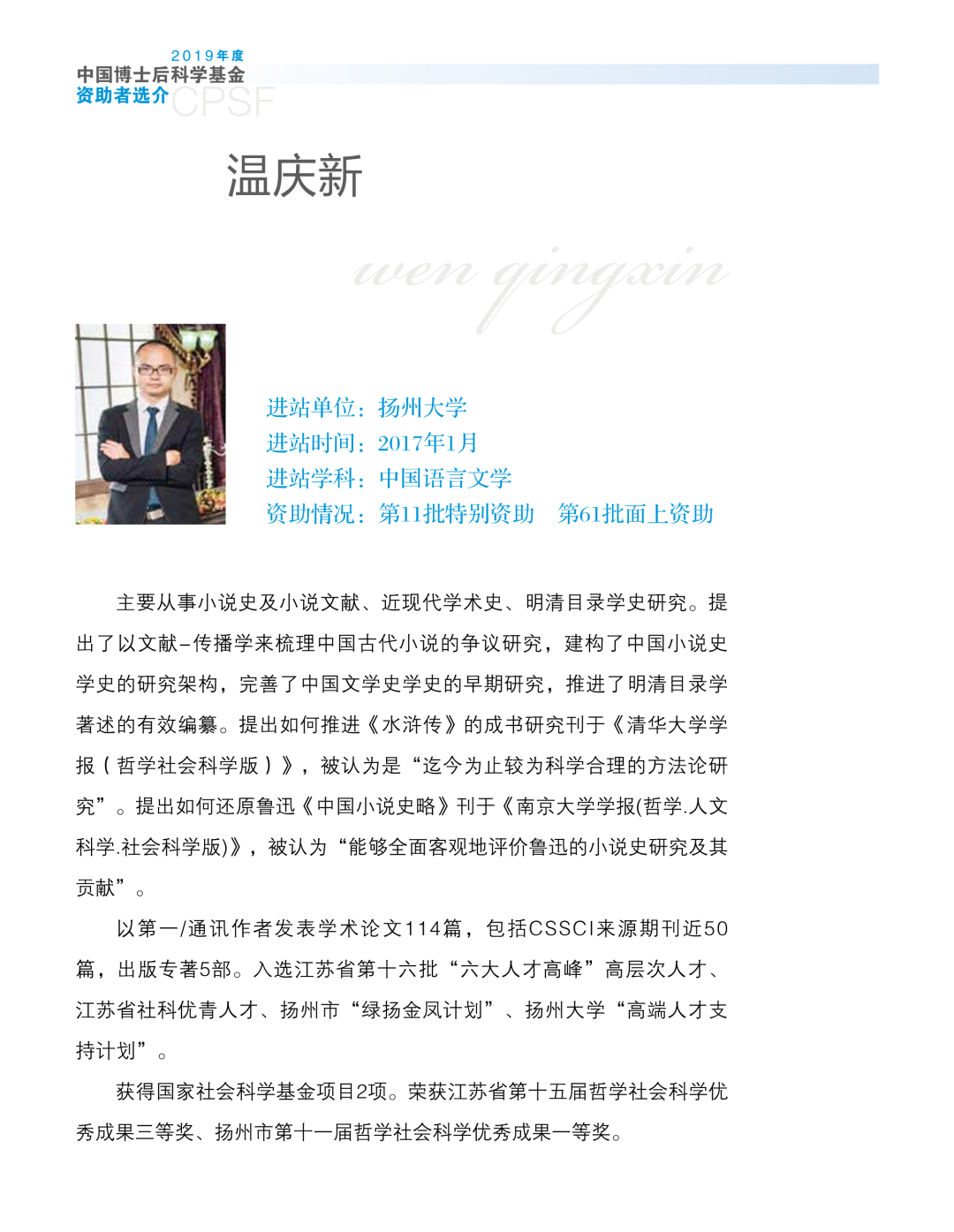 (注:素材选自《2019年度中国博士后科学基金资助者选介》)